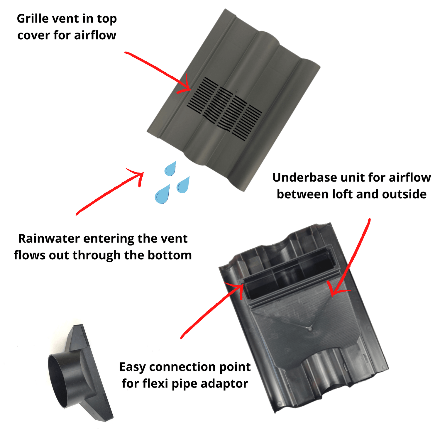 You can see how our Double Roman Roof Tile Vents work in the image to the left (or above if you're on mobile).