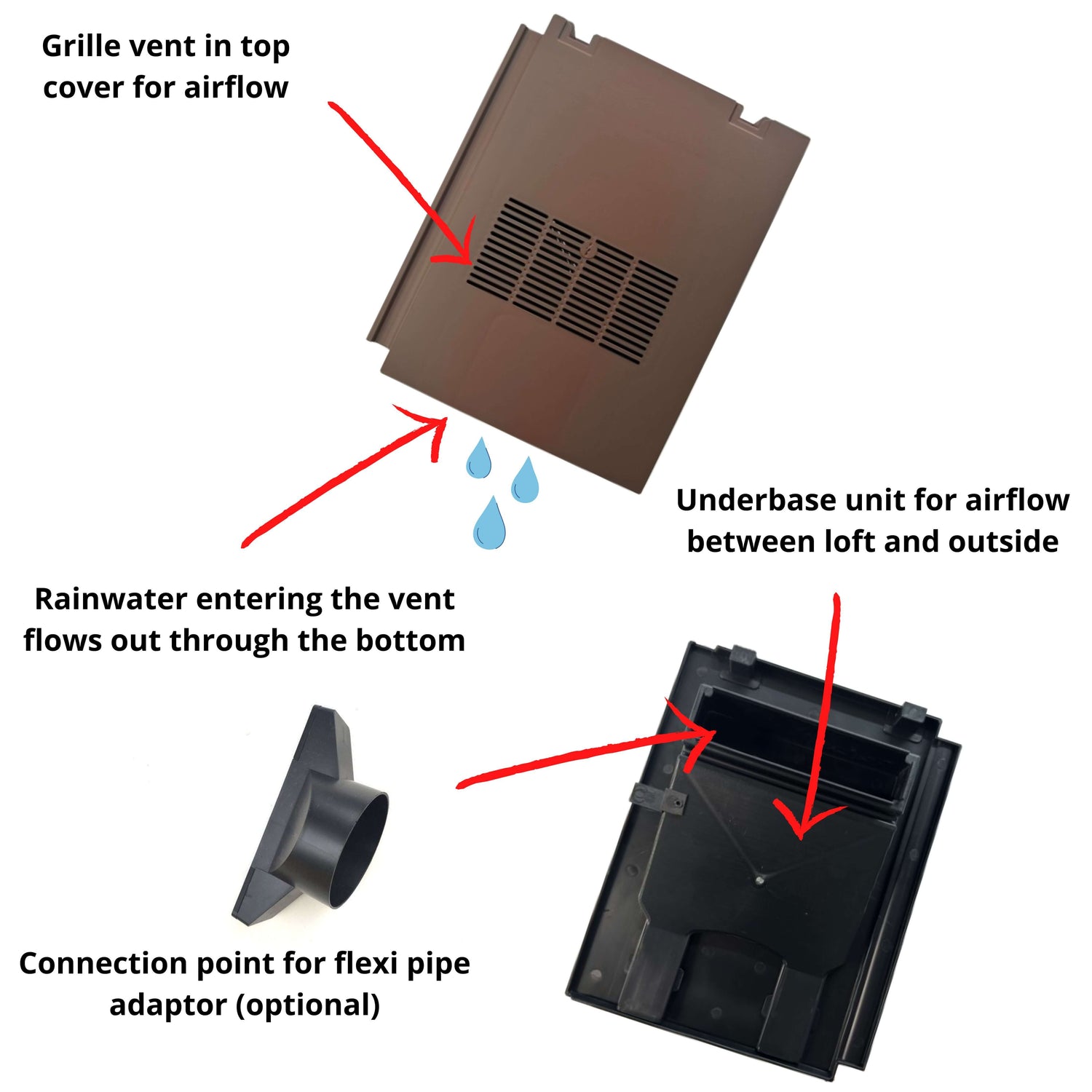 You can see how our Redland Richmond Vent Tile works in the image to the left (or above if you're on mobile).
